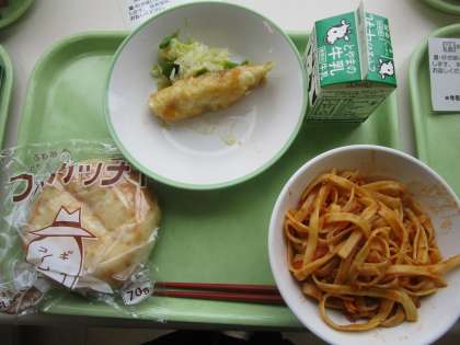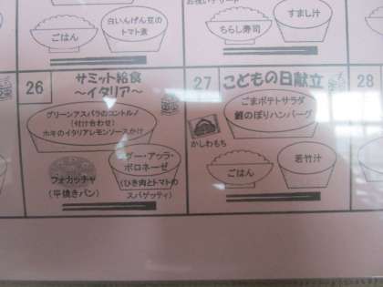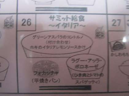 本日はサミット給食でした。イタリアの食事です。味わって食べましょう。