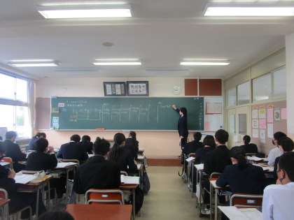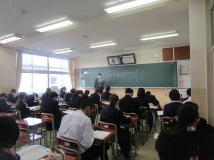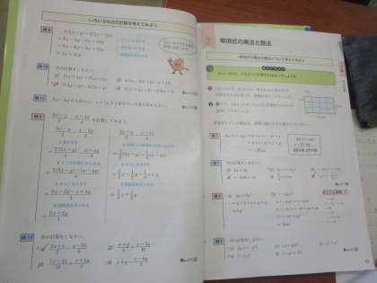 2年3組の英語は、「単項式の乗除」の学習をしていました。隣の生徒と答えを確認しながら学習が進められていました。