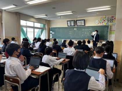 5限の総合では、14歳の挑戦に向けてスローガンについてのアンケートや、希望事業所のアンケートをとりました。
