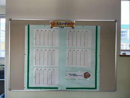 満点をとると、掲示板に名前が掲示されます。第一回は国語の満点コンテストでした。
