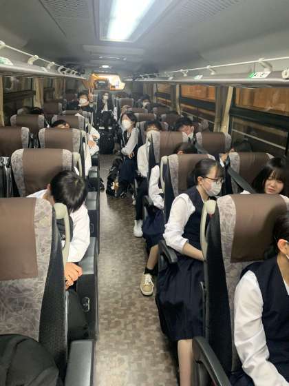 朝は5時45分に起きたのでバスの中で寝ている人が多いです。