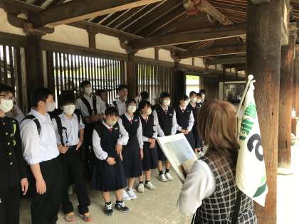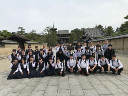 修学旅行 3日目 法隆寺 公開日 2023/05/13 更新日 2023/05/13 3学年 聖徳太子ゆかりの斑鳩の里を訪問。五重塔や金堂や、百済観音、玉虫厨子を見学しました。国宝の多さに生徒たちは驚いている様子でした。