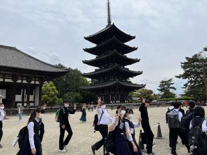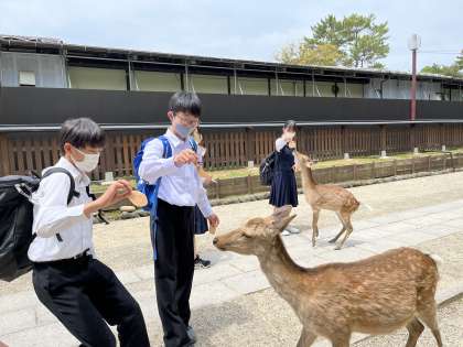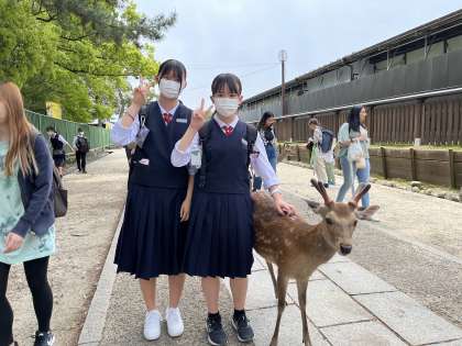 興福寺にもシカがたくさんいて、みんな大喜びでした!美しい顔立ちの阿修羅像もしっかりと見学してきました。