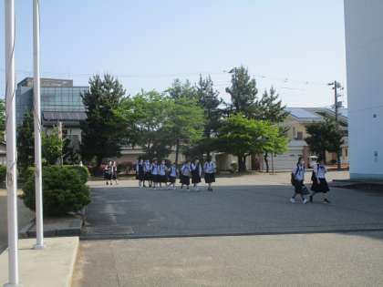 暑い日となり、昨日放送で呼びかけたこともあり、ワイシャツ、オーバーブラウスの生徒が多かったです。1年生女子は初めてのオーバーブラウスで初々しかったです。気温に合わせた着こなしで体調を整えて過ごしましょう。