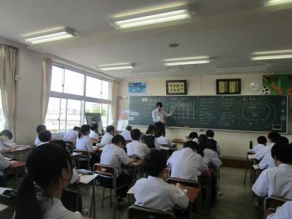 5月18日(木)1限 1年4組の数学は、「分配法則を使おう」という課題で学習していました。