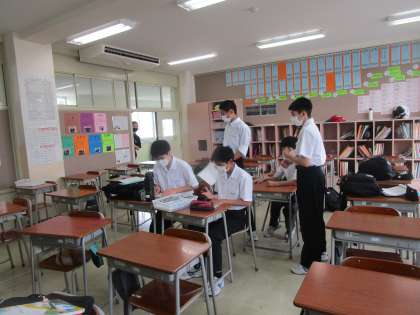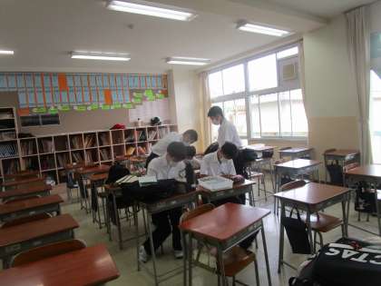 社会に学ぶ14歳の挑戦 マナーアップ集会準備 公開日 2023/05/18 更新日 2023/05/18 2学年 5月18日(木)放課後 社会に学ぶ14歳の挑戦に向けて、マナーアップ集会の準備をしていました。14歳の挑戦に向けて張り切って準備をしてくれていました。すばらしいマナーで14歳の挑戦に臨んでくれることと思います。