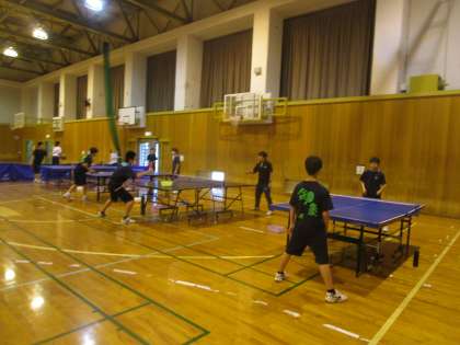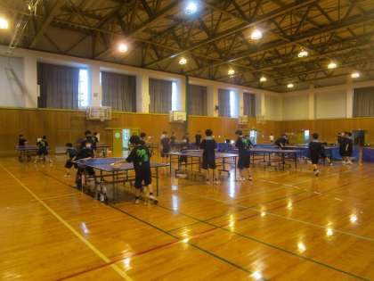 体育館では男子卓球部が週1回の体育館練習を頑張っていました、顧問の先生も参加し、熱が入っています。