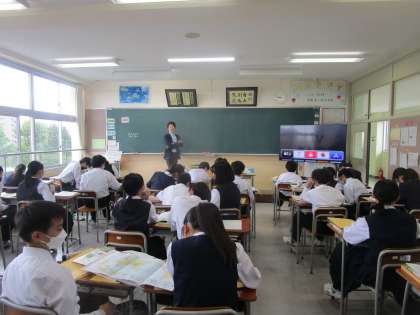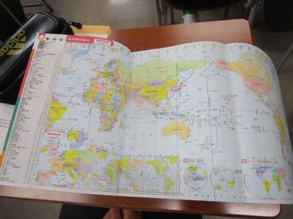 5月23日(火)1限 1年1組の社会は、地図帳を開いて様々な国を探していました。