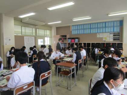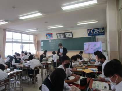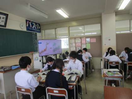 2年3組の社会は、「なぜ日本は災害リスク世界4位なのは」という課題で学習していました。グループで話し合いながら学習を深めていました。