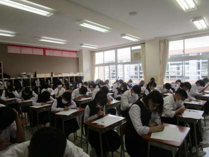 3年単元テスト 公開日 2023/05/25 更新日 2023/05/25 3学年 5月25日(木)6限 3年生は、社会、国語、英語の単元テストを行っていました。1学期前半部分の確認です。6月下旬の期末考査に向けて学習の見直しをしておきましょう。