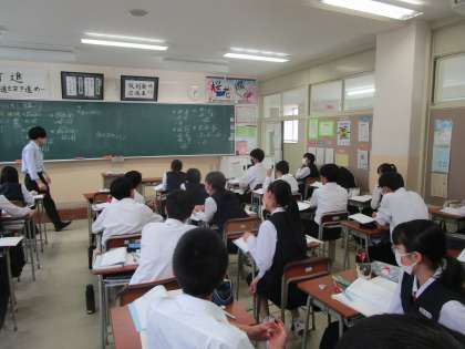 3年3組 数学 公開日 2023/05/26 更新日 2023/05/26 3学年 5月26日(金)5限 3年3組の数学は、ルートのついた計算をしていました。隣の生徒とやり方について確認したり、みんなで理解し合う場面が多い授業でした。