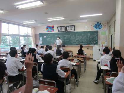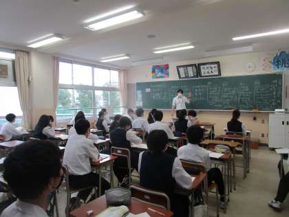2年1組 数学 公開日 2023/05/26 更新日 2023/05/26 2学年 5月26日(金)4限 2年1組の数学は、代入法について学習していました。分かったときは手をあげる、友達同士で解き方を教え合うなどみんなで学習を深めていました。