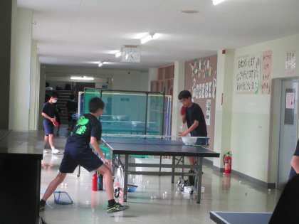 5月26日(金) 1年生に様々な球種のサーブを教えたり、多球練習に取り組んだりしていました。