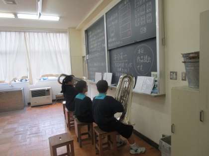 5月26日(金) 技術室2つを使って練習していました。平日もパートごとに練習に励んでいます。