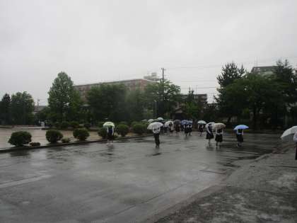 雨の中の登校 公開日 2023/05/29 更新日 2023/05/29 学校だより 5月29日(月) 天気予報通り、どしゃぶりの中の登校となりました。ホームページで案内したとおり、長靴で登校していた生徒も多かったです。天気と相談しながら適切な対応がとれるといいですね。雨にも負けず、生徒は元気に登校してくれていました。