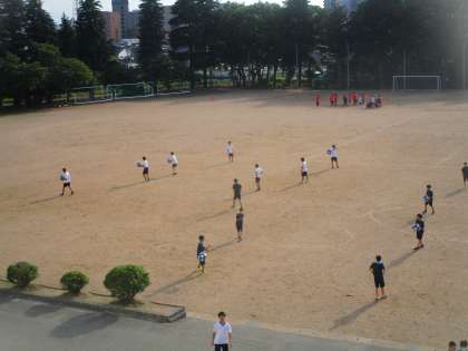 男女陸上競技部がボールや台を使って練習していました。いつも体全身や体幹を総合的に鍛えています