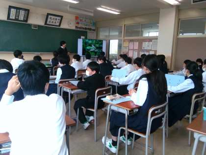 1年2組 理科 公開日 2023/05/31 更新日 2023/05/31 1学年 5月30日(火)3限 1年2組の理科は、教室で動物の分類について学習していました。モニターに映し出された動物の写真を見て、共通点や相違点について気付いたことを元気よく発表していました。