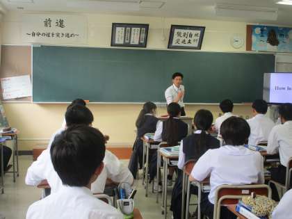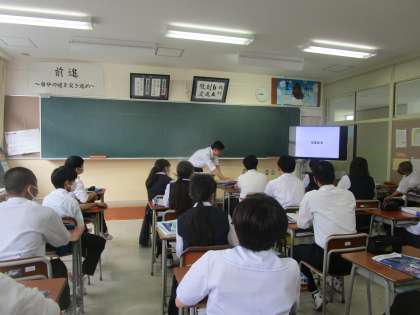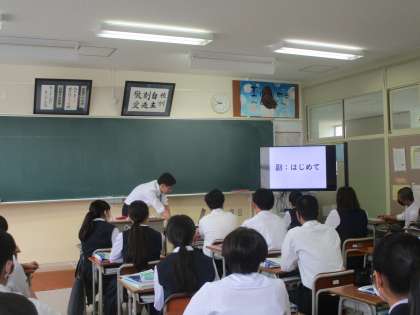 英語の教育実習の先生が頑張っています 公開日 2023/05/31 更新日 2023/05/31 3学年 5月31日(水)2限 3年5組の英語は教育実習の先生の授業でした。テンポよく画面を見ながら先生が発音し、生徒がそのあとリピートしていました。