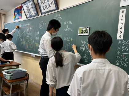 理科の授業後、先生に質問している生徒がいました。分からなかったことをすぐ解決する姿勢、立派ですね。