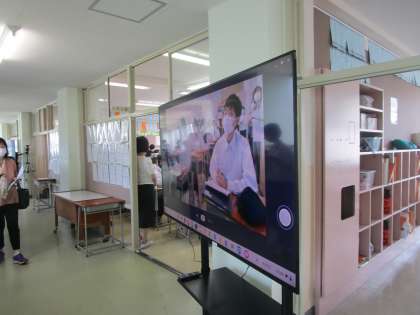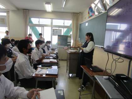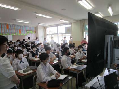 2年2組で国語の授業研究会が行われました。富山市内の約50名の国語の先生が授業参観されました。人数が多いので廊下にモニターを2台用意して参観できるようにしました。