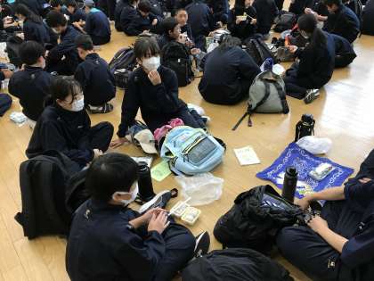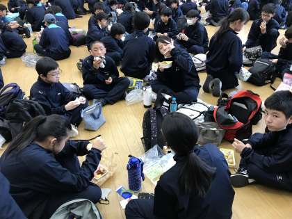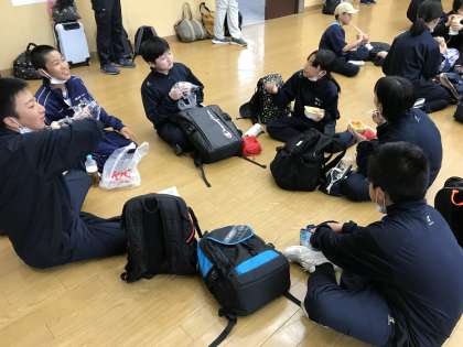国立能登青少年交流の家に到着し、午後の活動に備えて昼食をとっています。みんな元気いっぱいです!