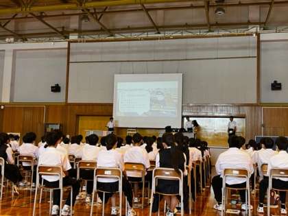 2学年 マナー集会 公開日 2023/06/08 更新日 2023/06/08 2学年 6限に、14歳の挑戦に向けてマナーに関する集会が行われました。実行委員のマナー担当の生徒が企画・運営し、楽しくマナーについて学べる集会となりました。