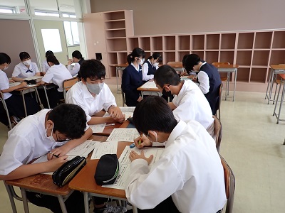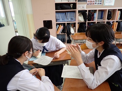 「社会に学ぶ『14歳の挑戦』」事前学習 公開日 2023/06/08 更新日 2023/06/08 2学年 6月8日(木)3限 事業所からFAXで送っていただきました資料を基に、しおりに活動内容をまとめました。班員と相談しながら、準備物等について確認しました。また、新たに伺いたい質問等も考え、よりよい活動となるよう学習を進めています。