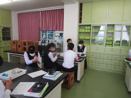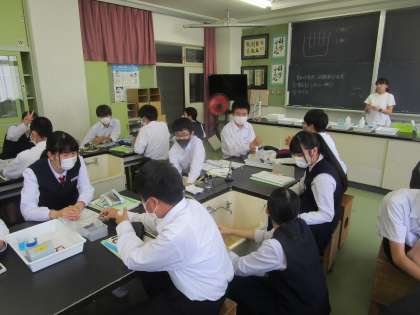 3年2組 理科 公開日 2023/06/12 更新日 2023/06/12 3学年 6月12日(月)4限 3年2組の理科は、理科室でダニエル電池の実験をしていました。実験のやり方を聞きながらグループで進めていました。