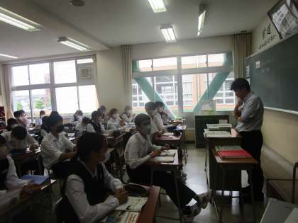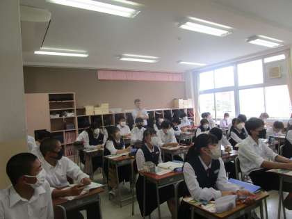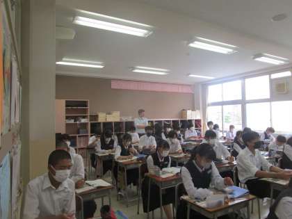 3年6組 英語 公開日 2023/06/14 更新日 2023/06/14 3学年 6月14日(水)4限 3年6組の英語は、ALTの先生を交えての授業でした。先生の説明にALTの先生が補足説明してくれていました。