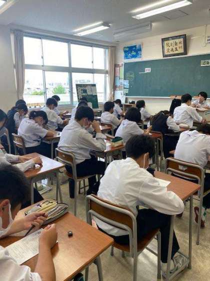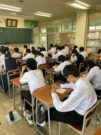 1年4組 理科 公開日 2023/06/15 更新日 2023/06/15 1学年 6月15日(木)5限 1年4組の5限目の理科では、期末テストに向け、1学期の復習や、確認プリントに取り組みました。時間を計ってのプリントテストを全員真剣な態度で解いていました。テスト本番に役に立つよう、繰り返しコツコツ復習してほしいですね。