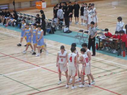 女子バスケットボール部が会場を2000年体育館に移して2回戦、水橋中学校との対戦です。いよいよ試合開始です。