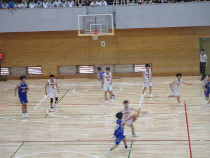 富山市総合選手権大会3日目 バスケットボール男子 準決勝 公開日 2023/06/19 更新日 2023/06/19 部活動 6月18日(日)11時 2000年体育館でバスケットボール男子準決勝です。男子は選手層も厚く、エントリーされた15名全員が出場し、攻守に全員が頑張ってプレーしていました。
