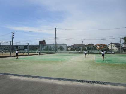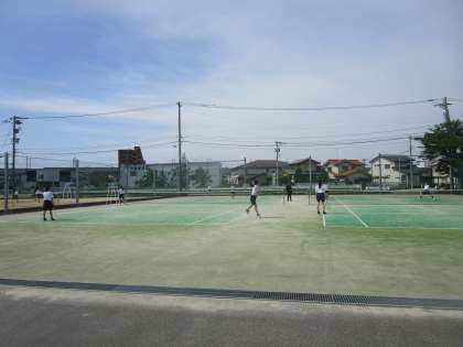 3年5組、6組女子 保健体育 公開日 2023/06/20 更新日 2023/06/20 3学年 6月20日(火)1限 3年5組、6組女子の保健体育はテニスコートでテニスをしていました。ラリーを続けようと頑張っていました。コントロールが難しいようです。