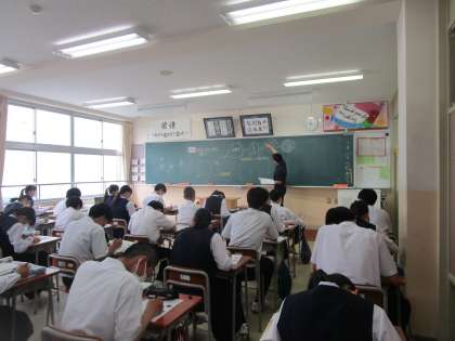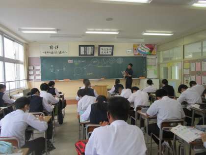3年1組 理科 公開日 2023/06/21 更新日 2023/06/21 3学年 6月21日(水)4限 3年1組の理科は、有性生殖について学習していました。板書を見ながら説明を聞き、ワークシートにまとめていました。