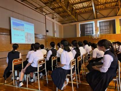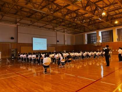 2学年 講演 公開日 2023/06/26 更新日 2023/06/26 2学年 6限に富山青年会議所の方をお招きし、夢のもち方や将来についてのご講演をいただきました。7月3日から始まる、14歳の挑戦につながるお話でした。