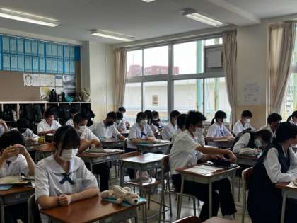 2学年 学活 公開日 2023/06/27 更新日 2023/06/27 2学年 2日目の期末考査が終わりました。学活では、少し疲れたような様子が見られました。また、来週から始まる14歳の挑戦に向けて、身なりの確認もしました。