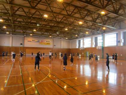 1年1組 保健体育 公開日 2023/06/29 更新日 2023/06/29 1学年 6月29日(木)2限 1年1組の保健体育は、体育館でバレーボールを学習していました。円陣パスで何回続くか必死に頑張っていました。