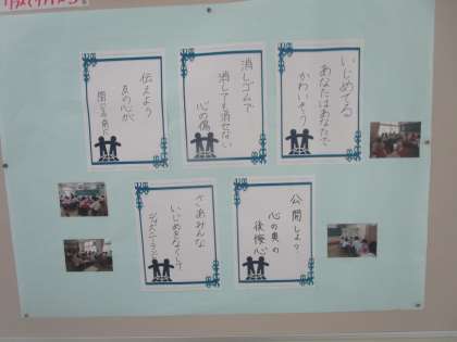 いじめ0標語を掲示しました その2 公開日 2023/07/01 更新日 2023/07/01 生徒会 生徒会で取り組んだいじめ0集会で考えた標語の2年生、1年生のものです。だれもが相手のことを思いやり過ごしていきましょう。