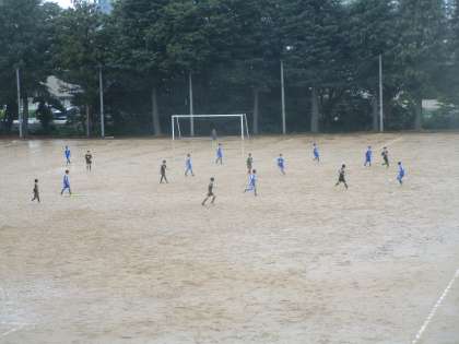 市民体育大会 サッカー 公開日 2023/07/01 更新日 2023/07/01 部活動 7月1日(土)12時 奥田中学校のグラウンドではサッカーの市民体育大会が行われました。奥田中学校が試合をしています。雨の中ですが、いつも練習しているグラウンドで勝利目指して頑張っています。頑張れ奥田中サッカー部