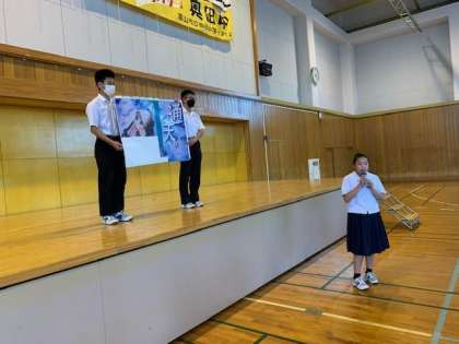 学年集会 その2 公開日 2023/07/03 更新日 2023/07/03 2学年 6/30(金)6限 代表生徒のかけ声とともに、みんなで拳をあげ、気合いを入れている様子と、学年生徒会企画の振り返りの様子です。今日からの14歳の挑戦に、いかされているでしょうか。