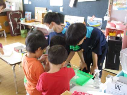 社会に学ぶ14歳の挑戦 藤園幼稚園 公開日 2023/07/03 更新日 2023/07/03 2学年 藤園幼稚園さんでの様子です。幼稚園の先生方の補助をしたり、一緒に遊んだりしていました。次々と起こる色々なことに少し戸惑う場面もありましたが、頑張っています。