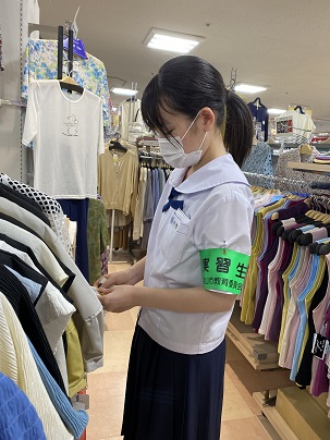 サザン富山アピア店さんでの様子です。商品のタグを作成し服へ取り付けて、服をハンガーに掛ける作業を行いました。