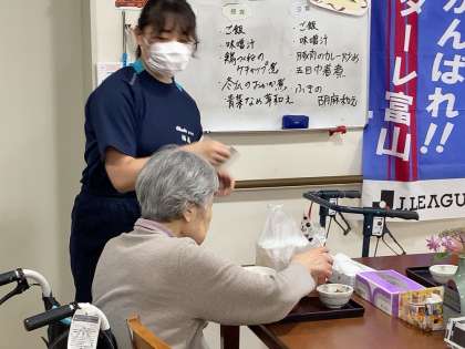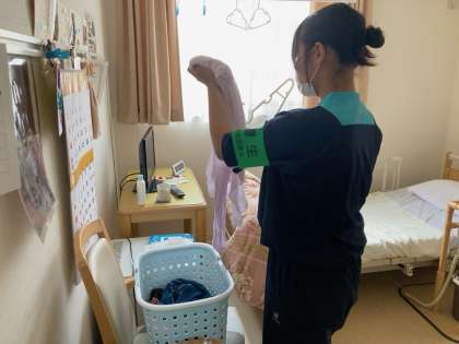 洗濯物干しや、昼食のお茶だしの体験をさせてもらっていました。