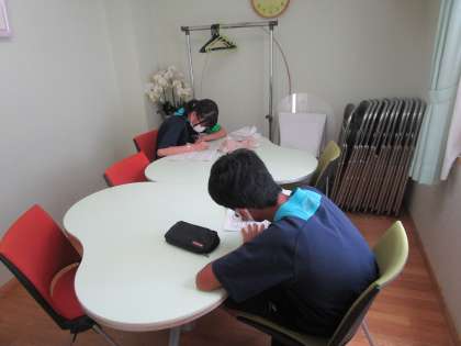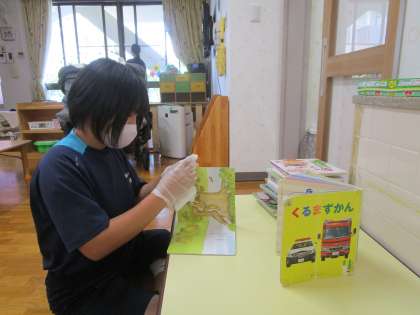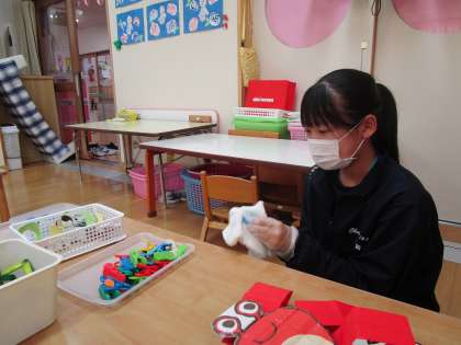 午睡時間中、おもちゃの消毒を黙々としていました。