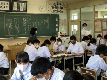 校内授業研究 1年3組国語 公開日 2023/07/04 更新日 2023/07/04 学校だより 7月4日(火)2限 1年3組で国語の公開授業が行われました。 今回は大ベテランの教頭先生の授業でした。 7月から9月にかけて、一人1授業の授業公開を予定しています。