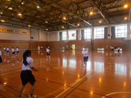 3年5組、6組女子保健体育 公開日 2023/07/06 更新日 2023/07/06 3学年 7月6日(木) 3年5組、6組女子の保健体育は体育館でバレーボールを学習していました。ソフトテニスの学習が終わり2人ペアで対人パスを復習していました。