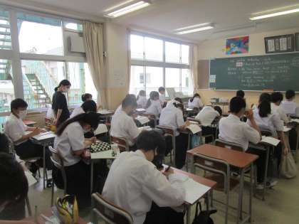 2年3組 英語 公開日 2023/07/12 更新日 2023/07/12 2学年 7月12日(水)2限 2年3組の英語は、不定詞の学習をしていました。板書を書き写し、確認していました。もう1人の先生が巡回し、ノートの状況を確認していました。