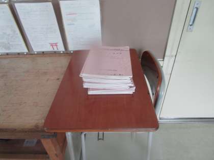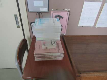 廊下には担任の先生が読んだマイライフ、点検したテキストなどが置いてあります。マイライフを通して担任の先生とのつながり、テキストの提出で学習の積み重ねと「継続は力なり」となります。