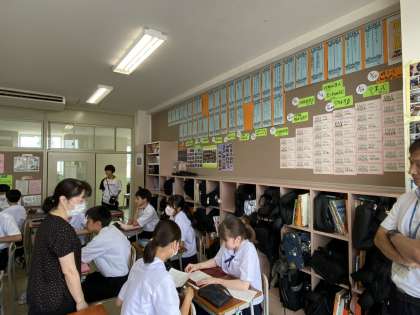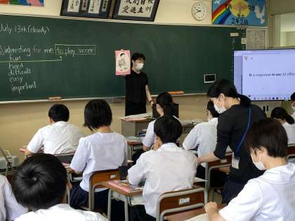 互見授業 2年2組英語 公開日 2023/07/14 更新日 2023/07/14 学校だより 7月13日(木)2限 2年2組で英語の公開授業がありました。 担当の先生らしさがにじみ出た授業で、生徒たちは楽しそうに学習していました。 また、教室背面の掲示が見事でした。