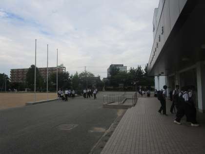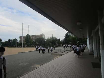 7時45分、生徒玄関が開きました。早めに学校に来ている生徒が校舎へ入っていきます。